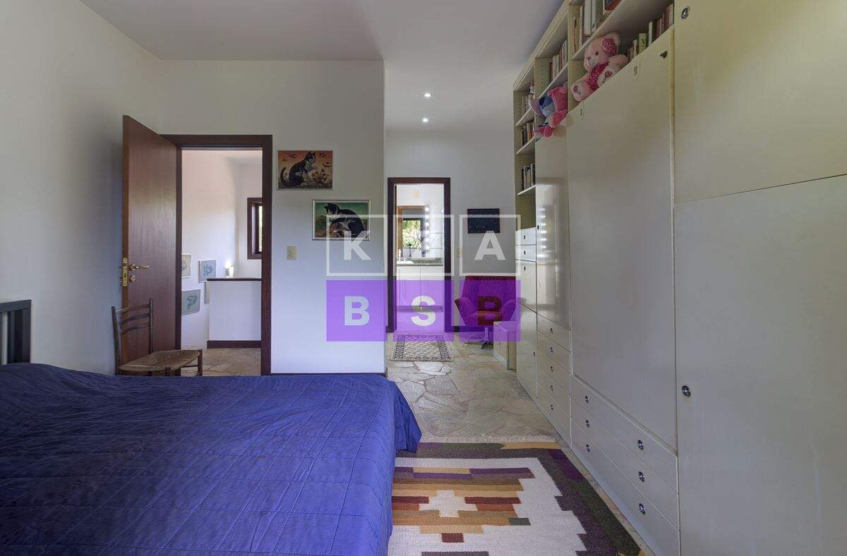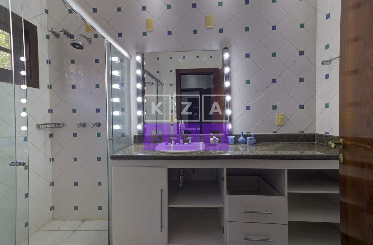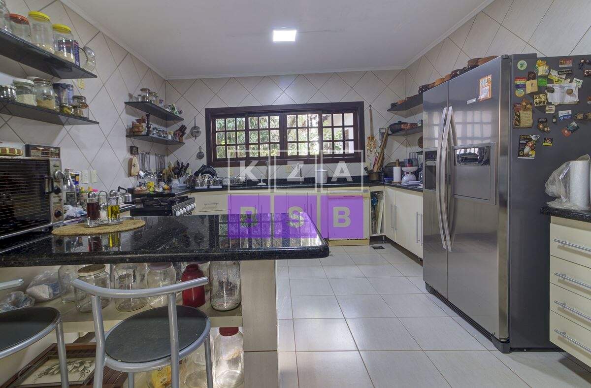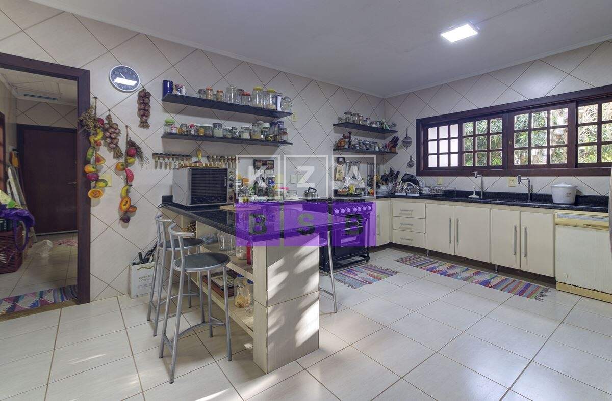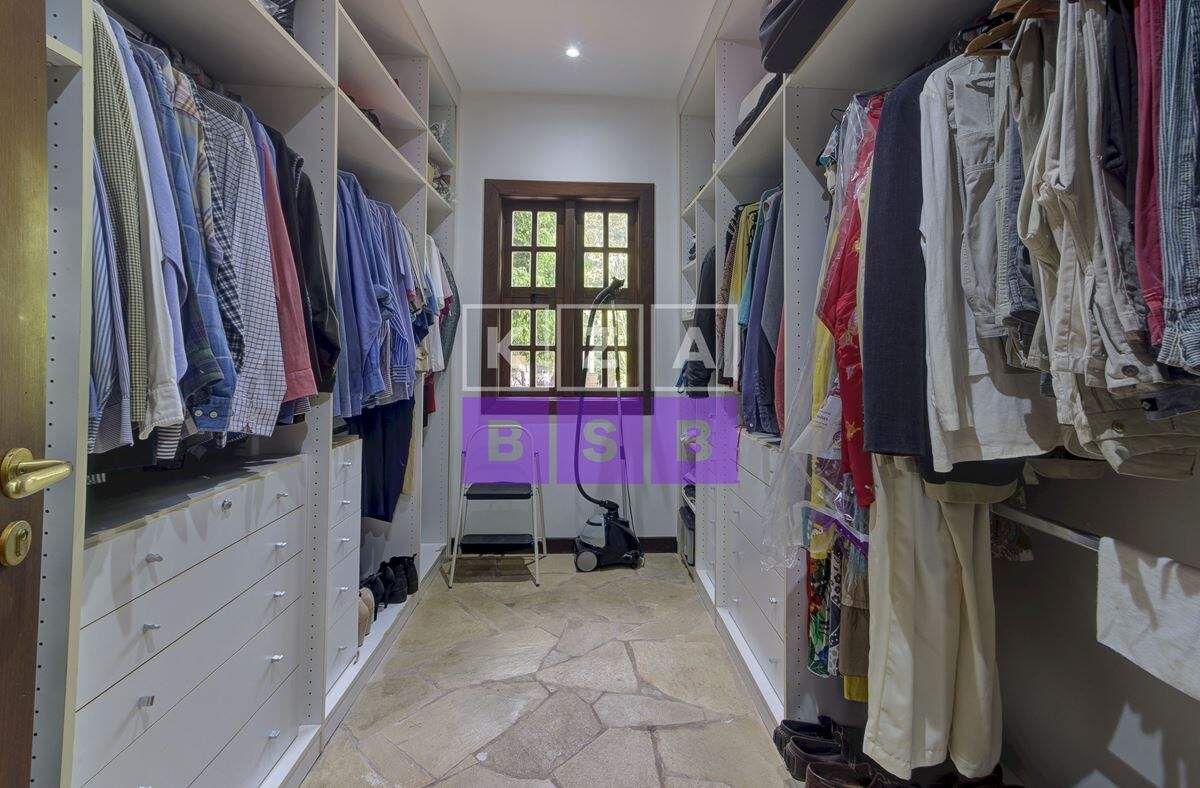 São cinco suítes com closet, lavabo, escritório, cozinha repleta de armários, despensa, dois quartos externos com banheiro para hóspede na área externa e canil.
