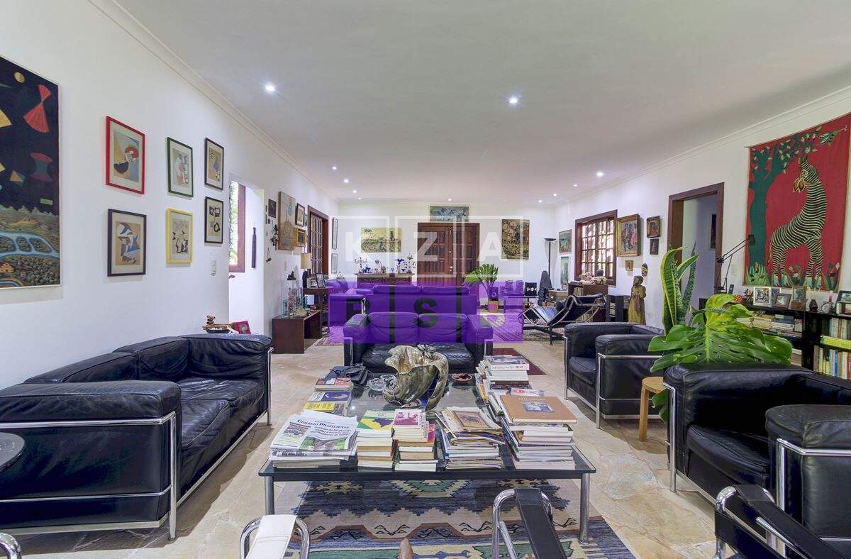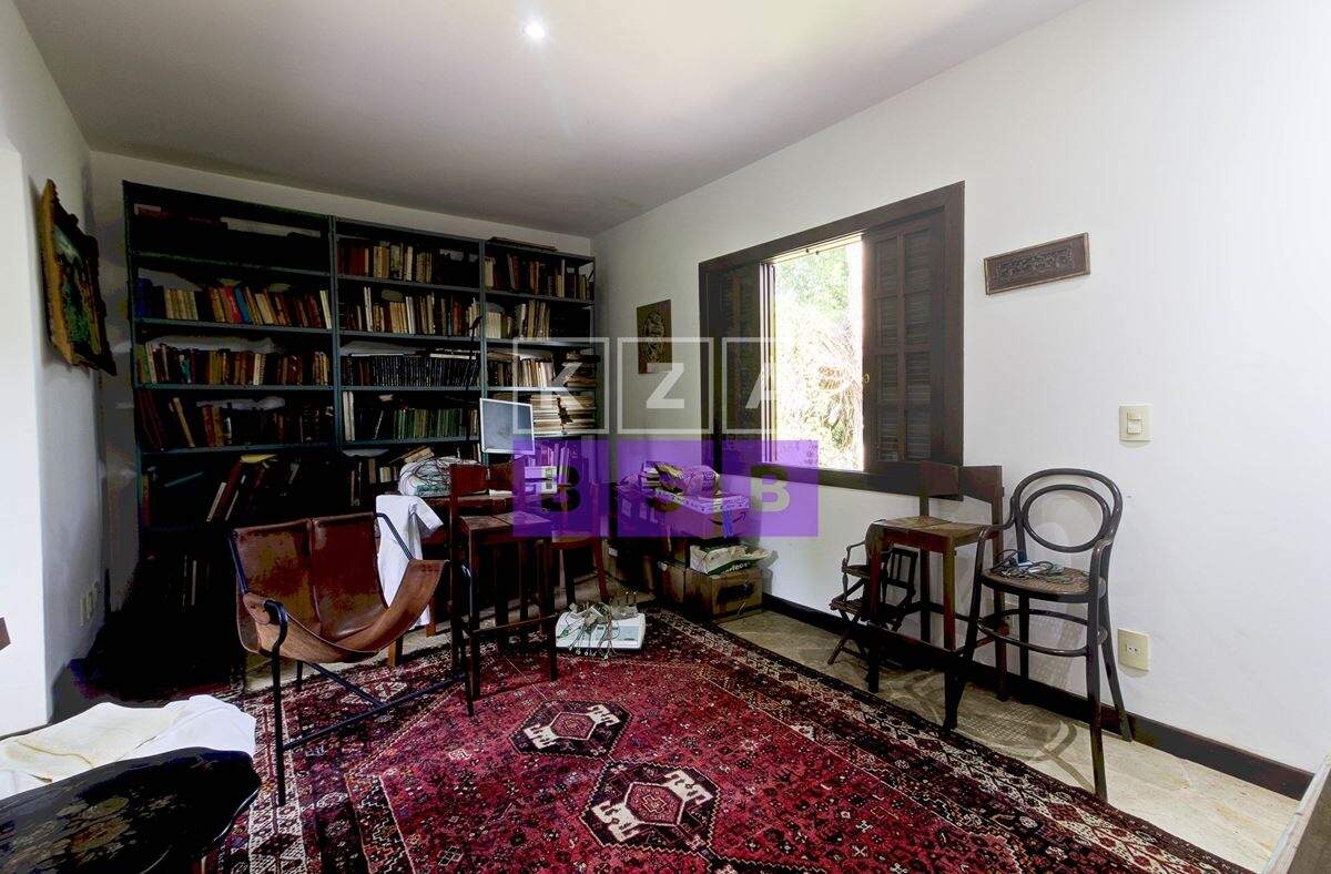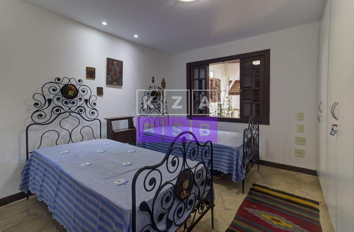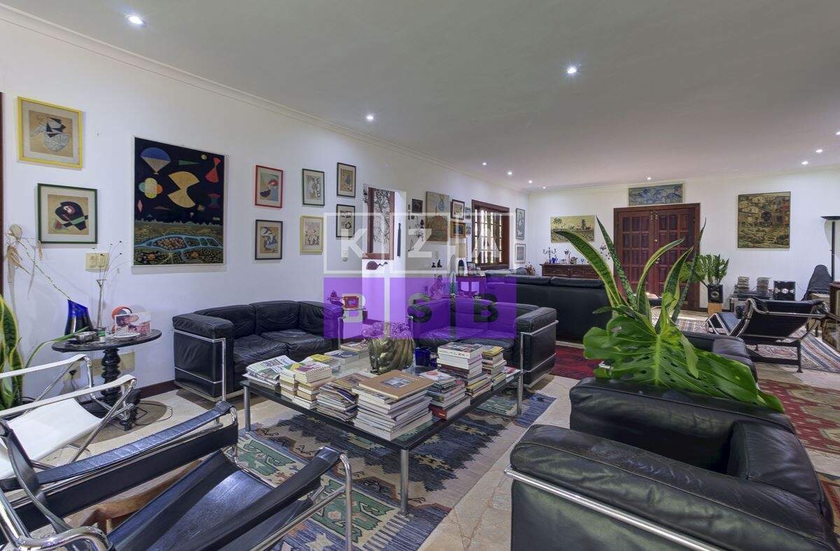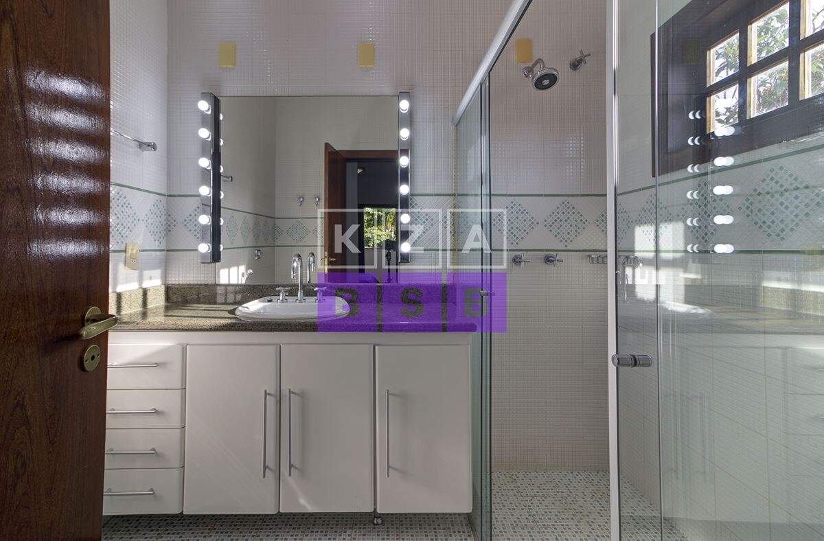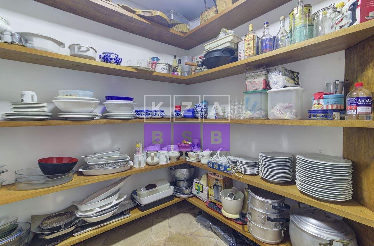 São cinco suítes com closet, lavabo, escritório, cozinha repleta de armários, despensa, dois quartos externos com banheiro para hóspede na área externa e canil.