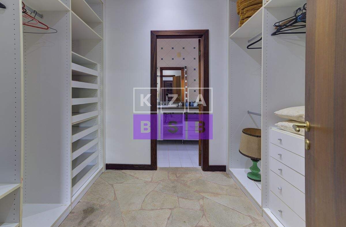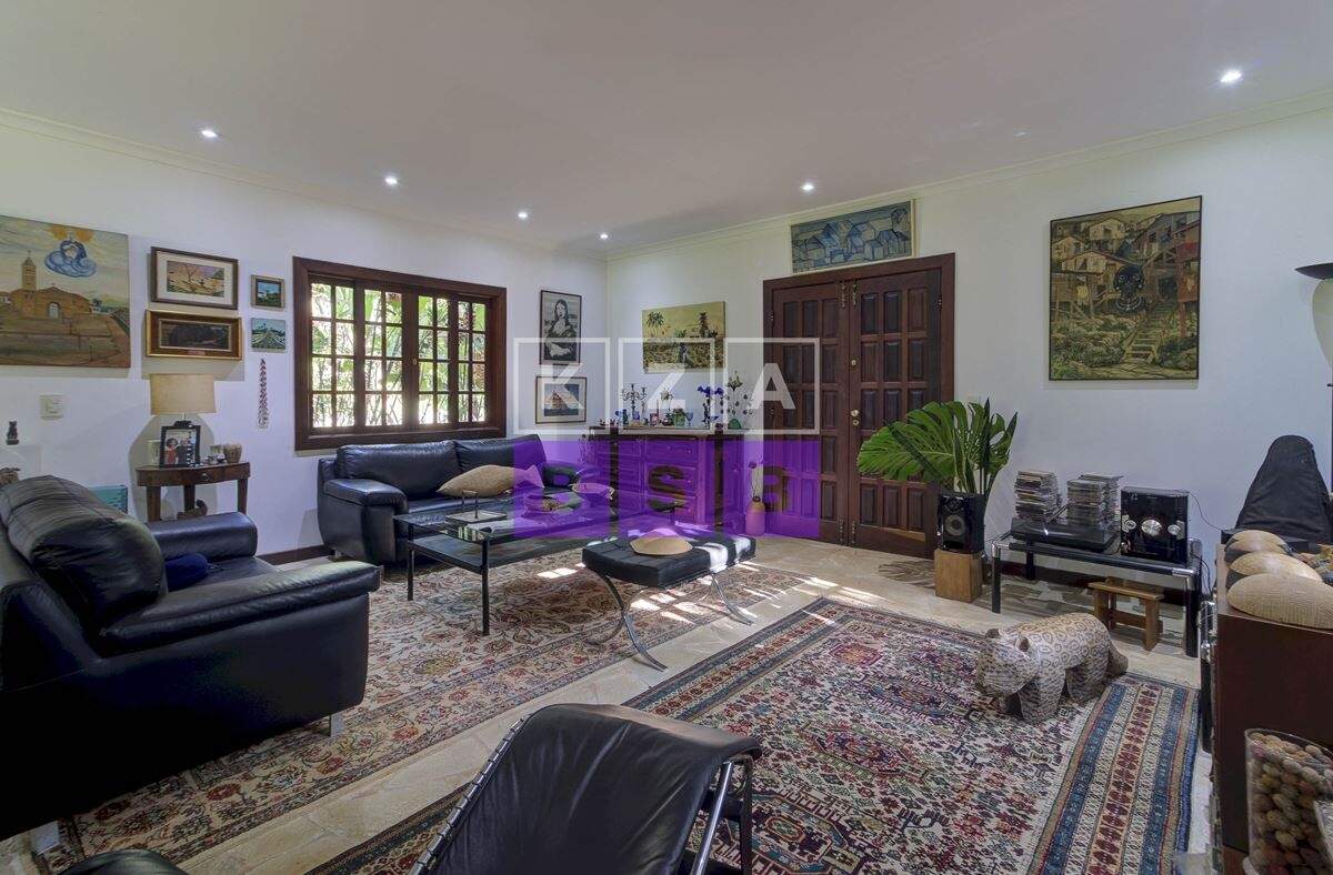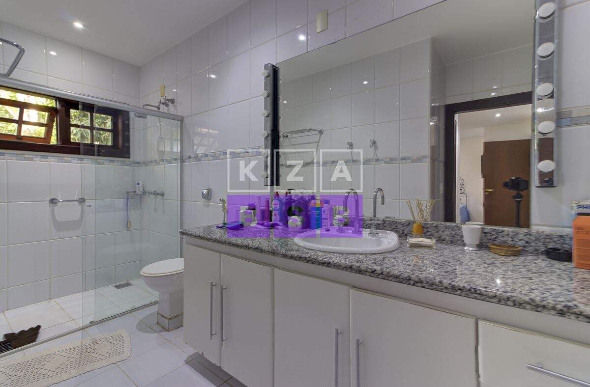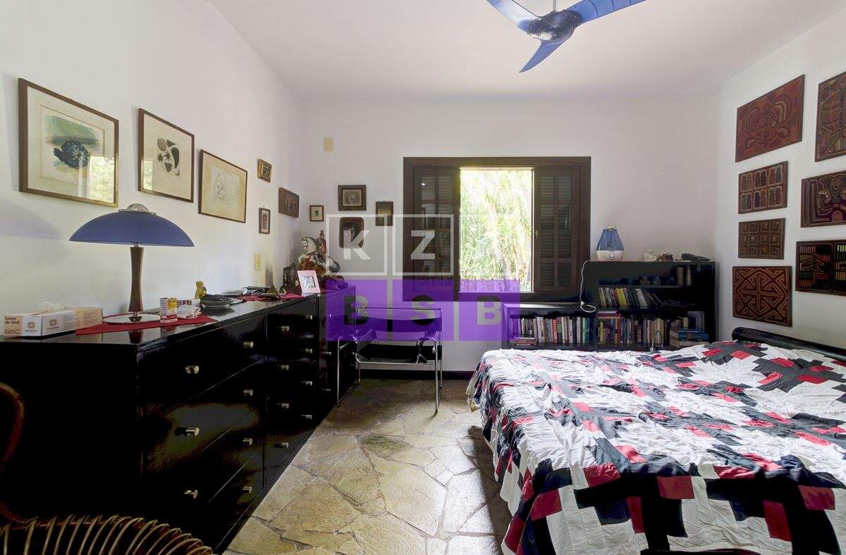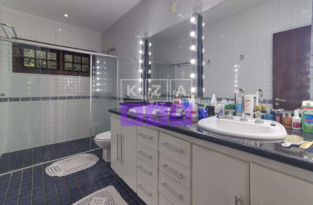 São cinco suítes com closet, lavabo, escritório, cozinha repleta de armários, despensa, dois quartos externos com banheiro para hóspede na área externa e canil.