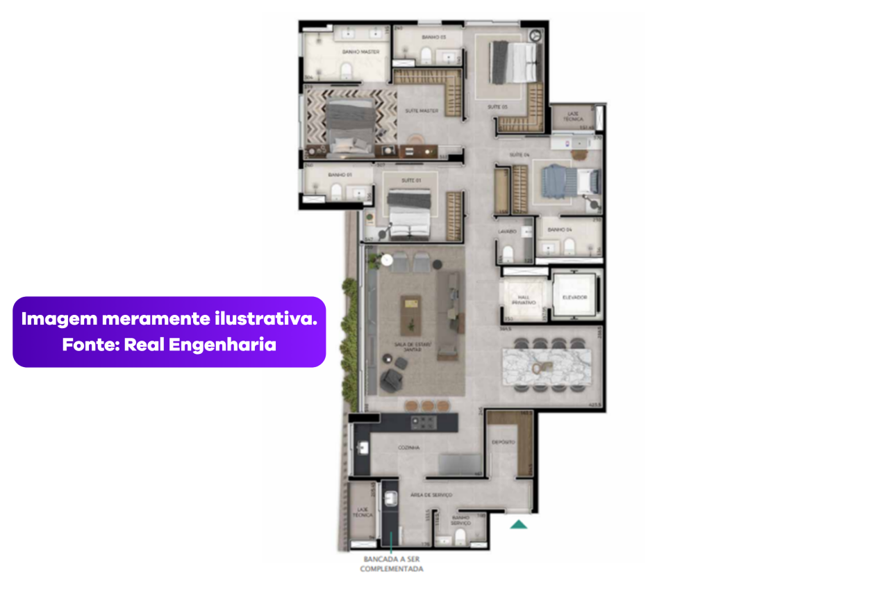 Esta unidade, em andar alto e voltada para o nascente, foi projetada para quem busca exclusividade e conforto em cada detalhe. A marcenaria sob medida traduz sofisticação, enquanto os banheiros entregues com boxe e espelho prontos reforçam o padrão elevado de acabamento.